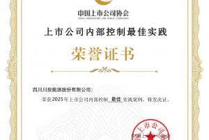 川投能源榮獲上市公司協(xié)會評選的內(nèi)部控制最佳實踐案例