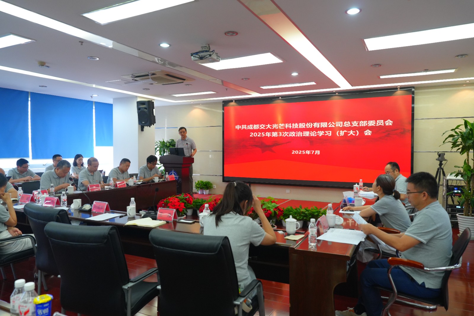 7月18日,交大光芒黨總支召開2025年第3次政治理論學(xué)習(xí)(擴(kuò)大)會(huì)。會(huì)議由黨總支書記、常務(wù)副總經(jīng)理王濤主持,黨總支委員、經(jīng)營班子成員和中層及以上管理人員參加學(xué)習(xí)。